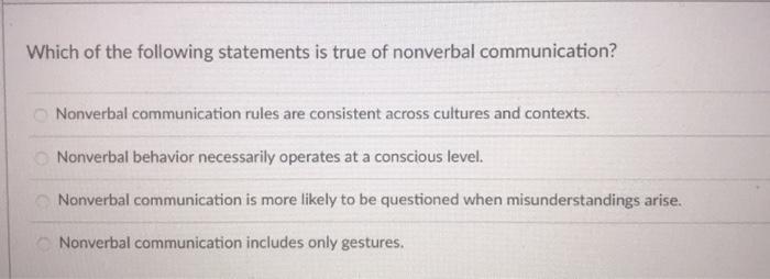 Solved Which Of The Following Is Not True About Nonverbal Chegg Com